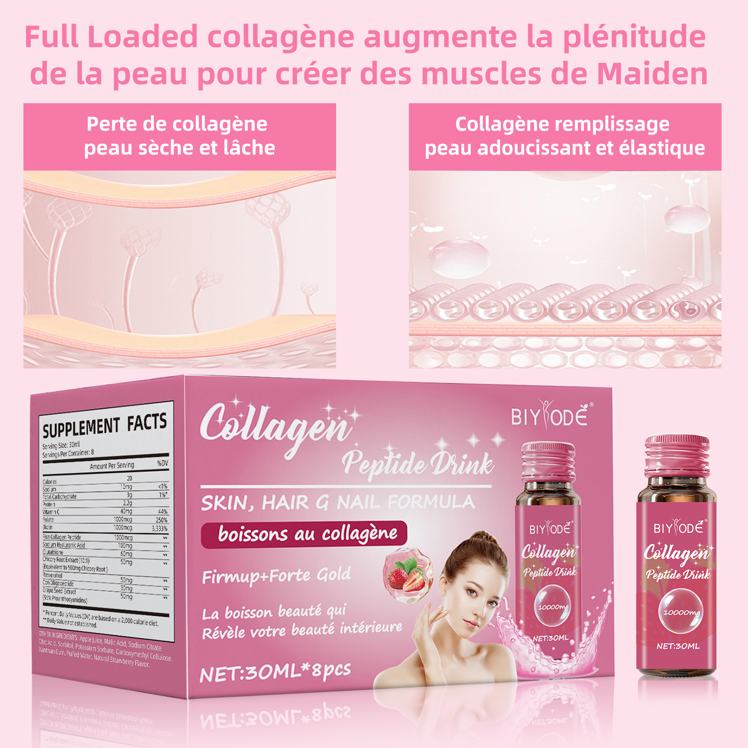 Private Label Customized Service BIYODE Collagen Peptide Drink Beauty Glow And Firmness Support